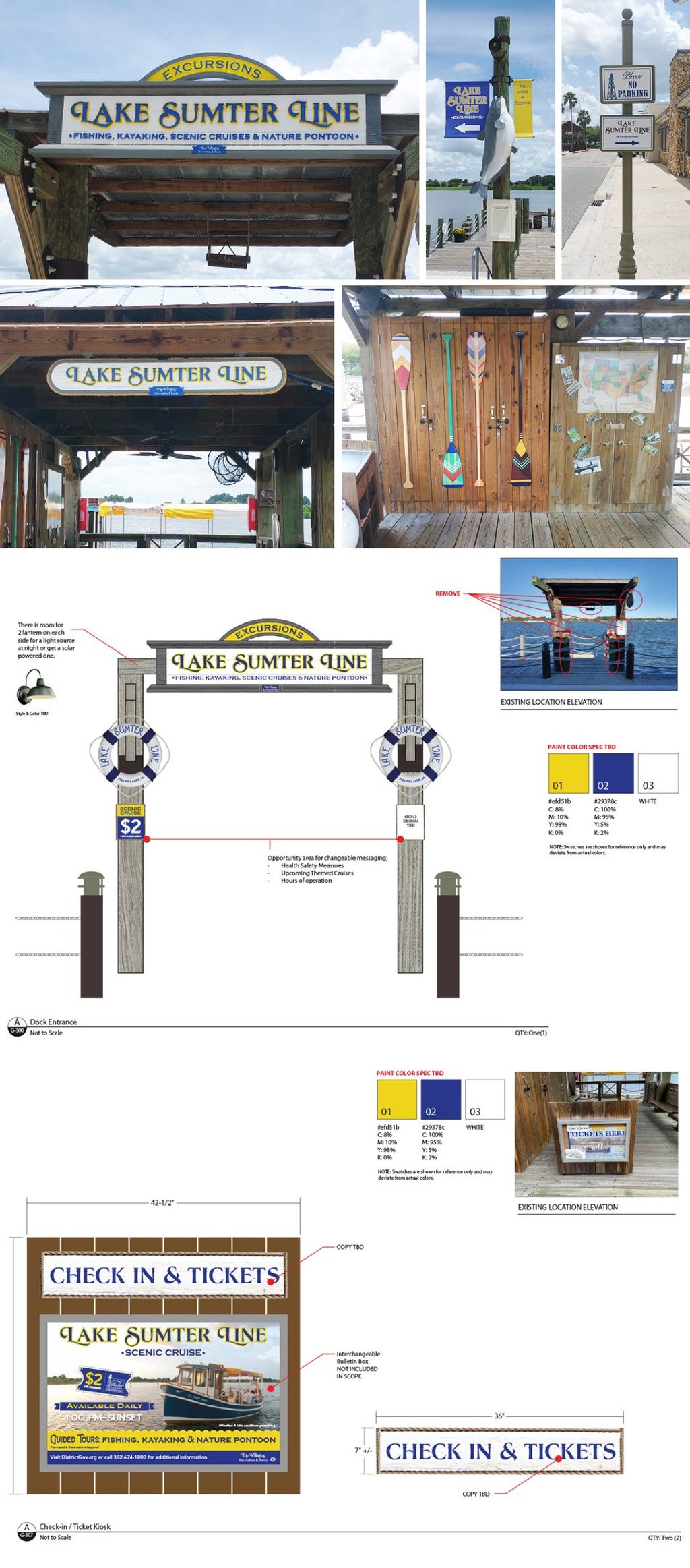 Designed a comprehensive wayfinding and marquee signage package for the Lake Sumter Landing Town Square boat tour experience. Integrated themed elements—including vintage paddle boards, a hometown pin map, and custom postcards—to enhance storytelling, guest engagement, and the overall charm of the scenic boat tour attraction.