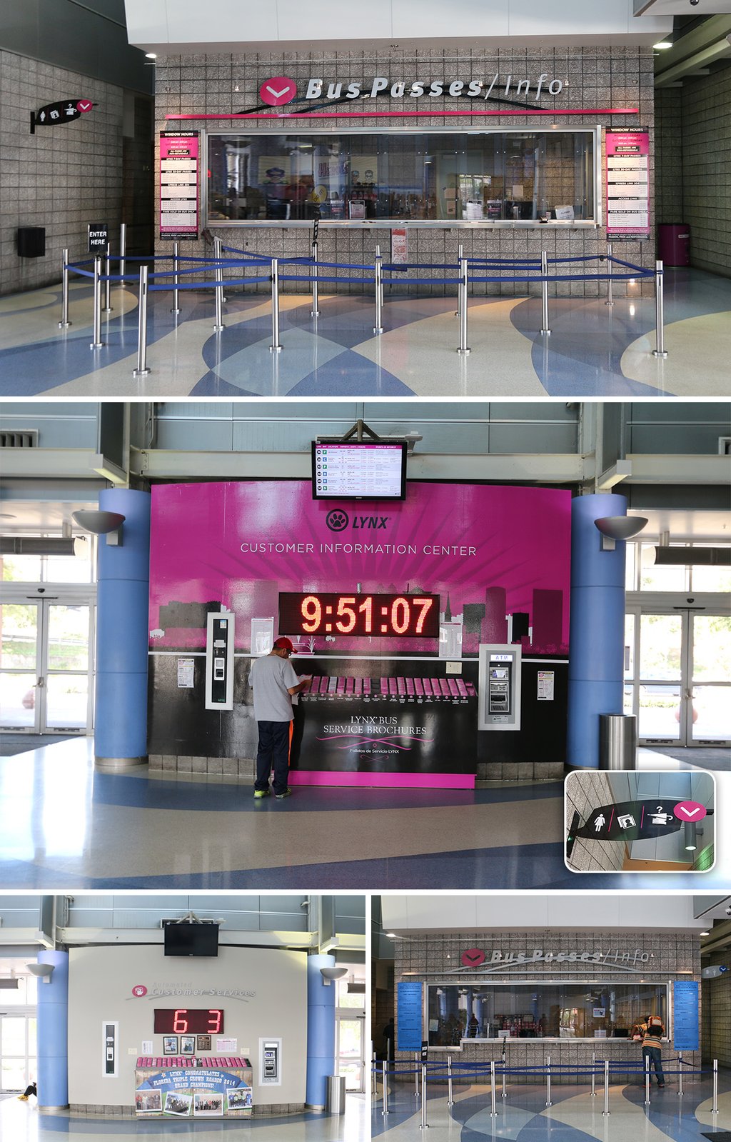 refreshed the customer information center wall and brochure box inside the terminal lobby with an updated design and artwork, incorporating branded colors for improved customer readability. Additionally, I updated the existing wayfinding and pricing signage at the main LYNX terminal to enhance readability and overall customer service experience.