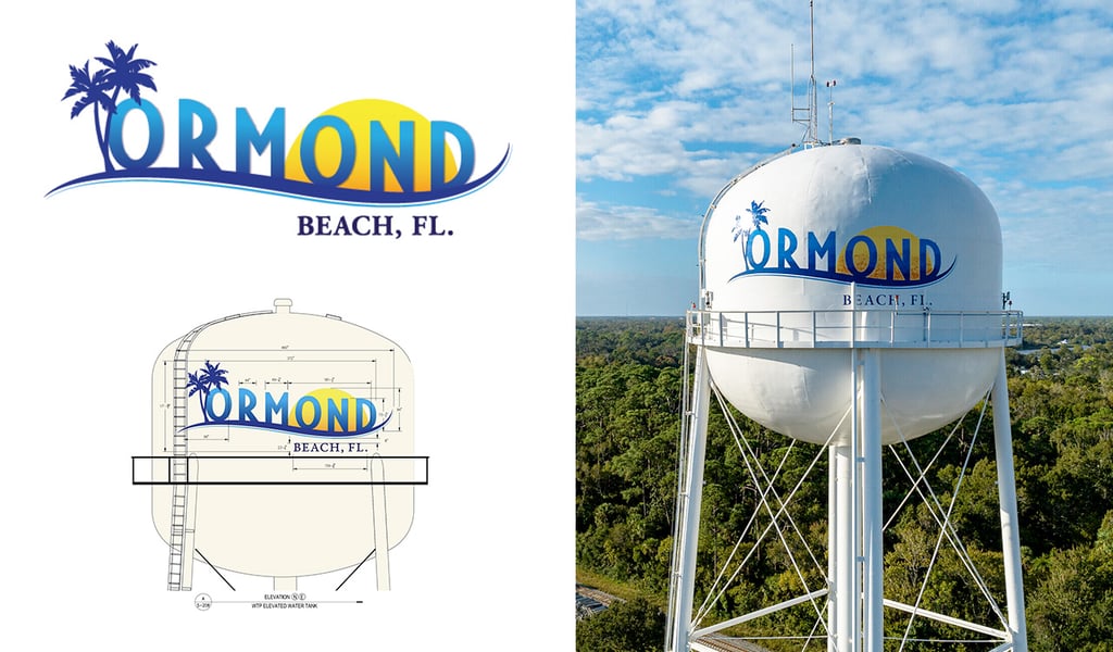 Created the artwork for the 75-feet-tall Ormond Beach water tower, situated near the intersection of Perrott Drive and Tomoka Avenue. The tower underwent extensive repairs, which served as inspiration for the new artwork adorning its structure.